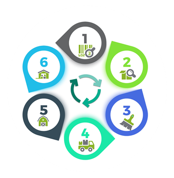 RPC-Pooling is a cyclic system that uses Reusable Plastic Containers (RPC) for transportation and presentation of goods typically fruits and vegetables. This reduces landfill impacts as RPC significantly reduce plastic wastage. Once in the cyclic system (see image below) items are: