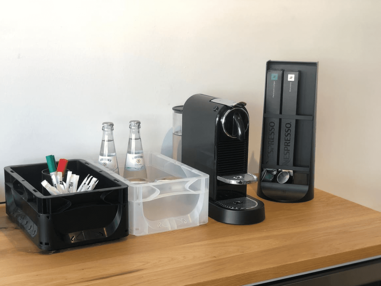 These are places where people are constantly passing through and therefore create more clutter. Shared storage systems should be the simplest and most convenient. So use small boxes on a locker in the hallway for the keys. Or in the kitchen, to keep things tidy near the coffee machine.